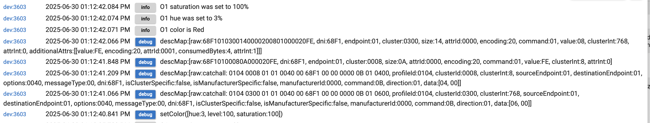 If you enable debug logging, that driver should log the actual values that get passed to the Hubitat commands (from Apple Home or anywhere). I'd start by seeing what those values are when you set the device to red the way that doesn't work as you expect.