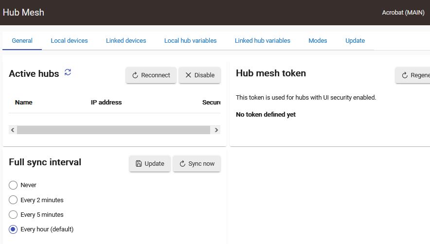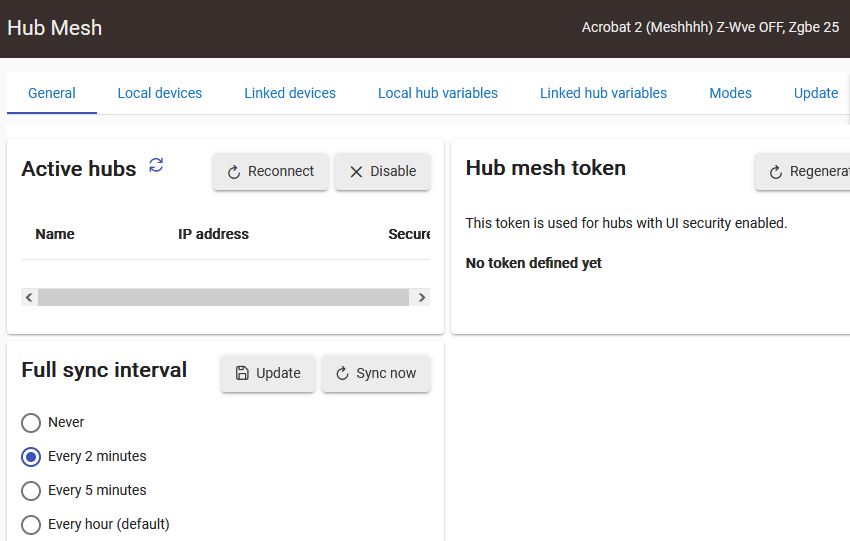 See 2 photos below of both hubs Hub Mesh -> General tabs. Are there steps I need to take on the Hub Mesh tabs of the Web interface?