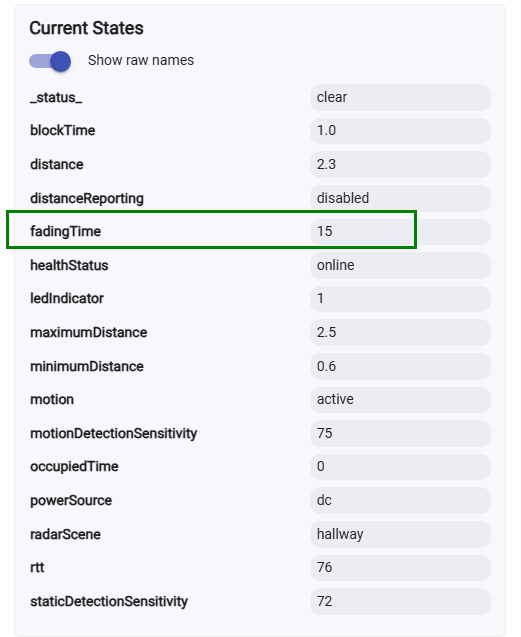 Will the 'fading time' be reported back as 15 seconds? (this is the 'Hallway' preset value)