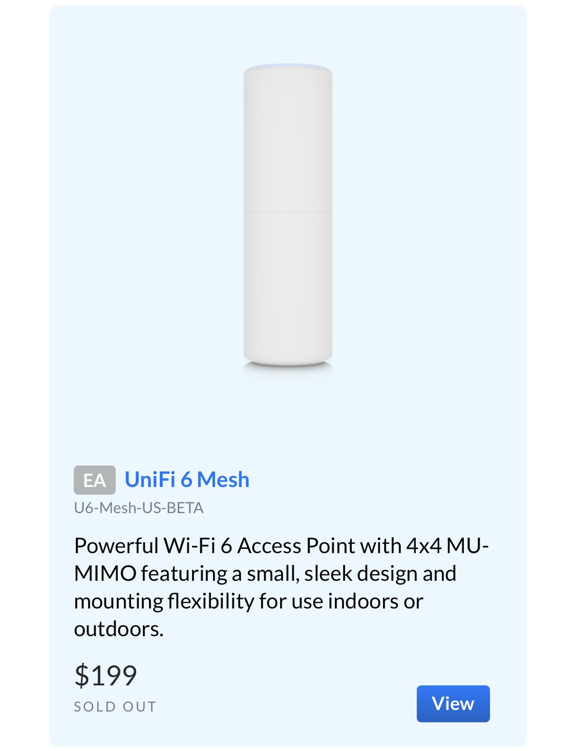 At some point. If I can find them. However I have to convince my wife. This will now be my third mesh variety in two years! Hoping I can resell the google wifi at least. I have a bunch of them. Does UniFi make any outdoor wifi6 APs? I didn’t see any. I have a bunch of outdoor wifi devices that I’d like to get better coverage for.