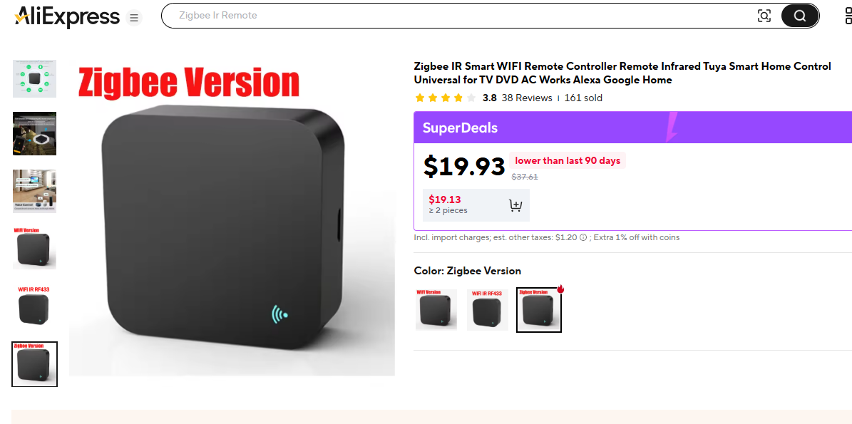I have one battery powered Zigbee IR, and one plug in. I got them from Ali Express.