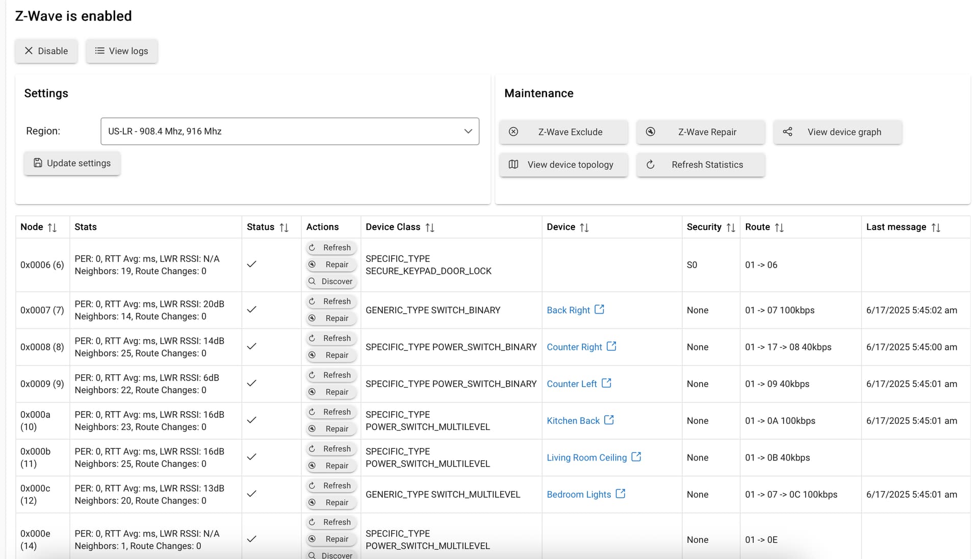 While you might be unable to interpret that list, others can. There’s a reason @rlithgow1 asked to see a screen shot of that page. You can black out device names, if necessary. Without seeing details of your zwave setup, we’re all playing guessing games.