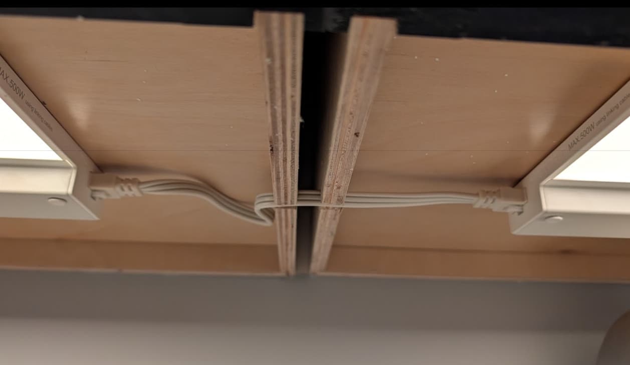 This picture was intentionally taken from a low angle so you can see the lights. If you're average height, they disappear under the cabinet edge.