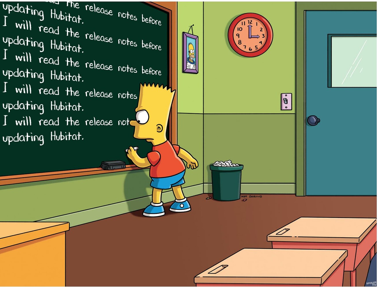 I just did the update and it rebooted up fine except I lost all my devices and apps. I rebooted the hub but no change. I was thinking it was a good thing I did a back up before the update so I just did a restore and hopefully that would fix it. Nope. The apps screen and devices screen were blank when I went to them. By chance I clicked on the "Clear" button up on the top right of the device screen and bingo, all my devices appeared. I did the same on the apps screen and it they appeared as well.