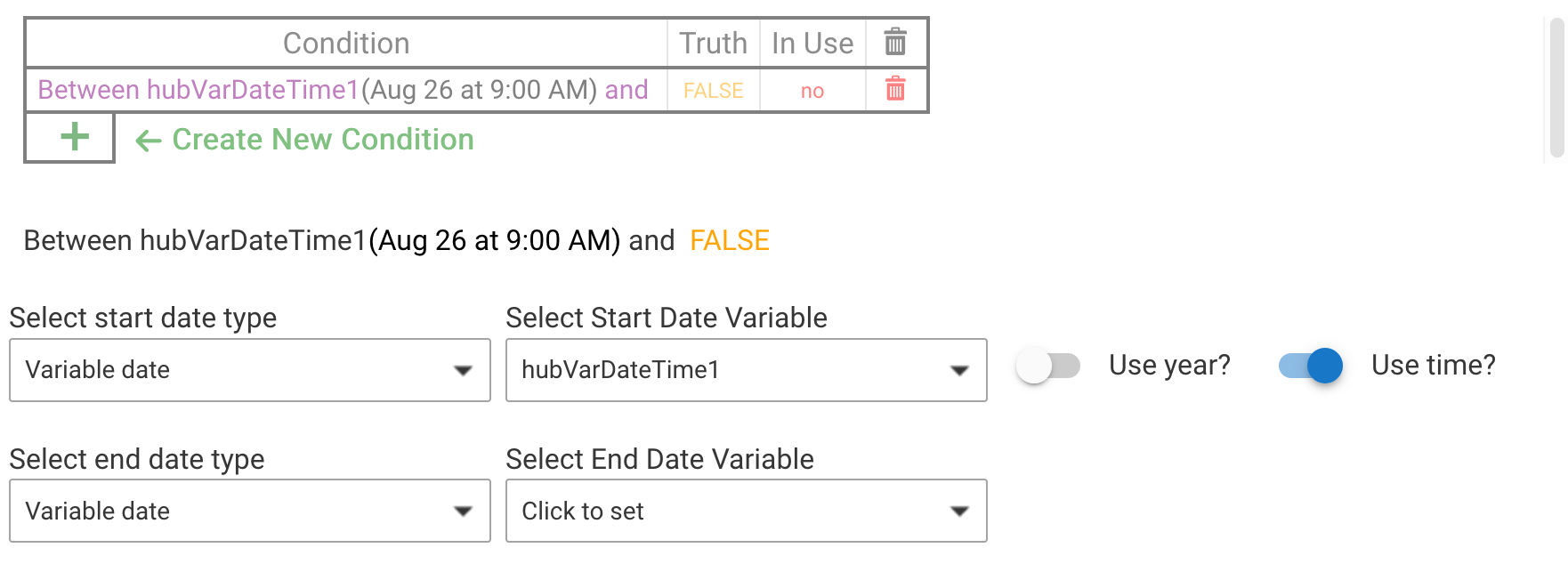 I have a Hub Variable called DysonOnTime which is type DateTime. I've created a Connector for it.