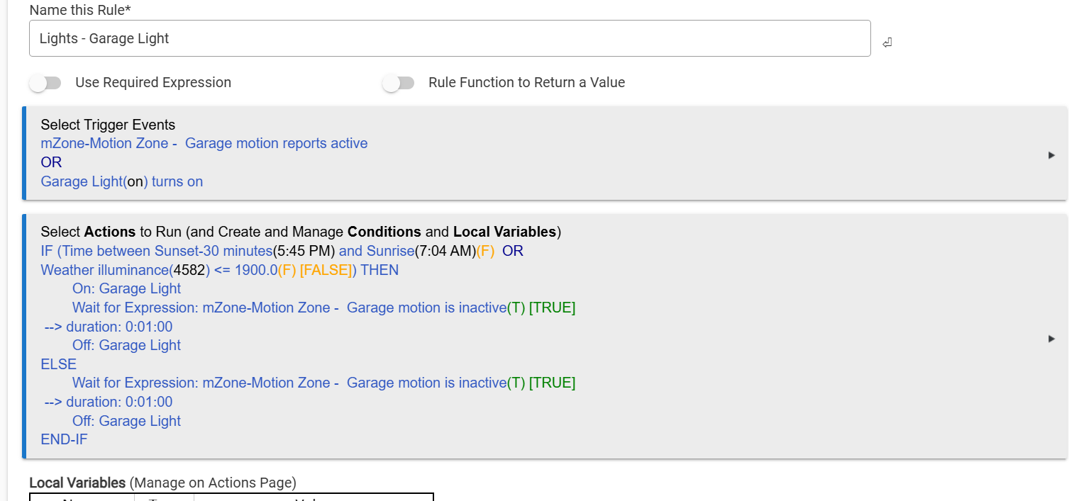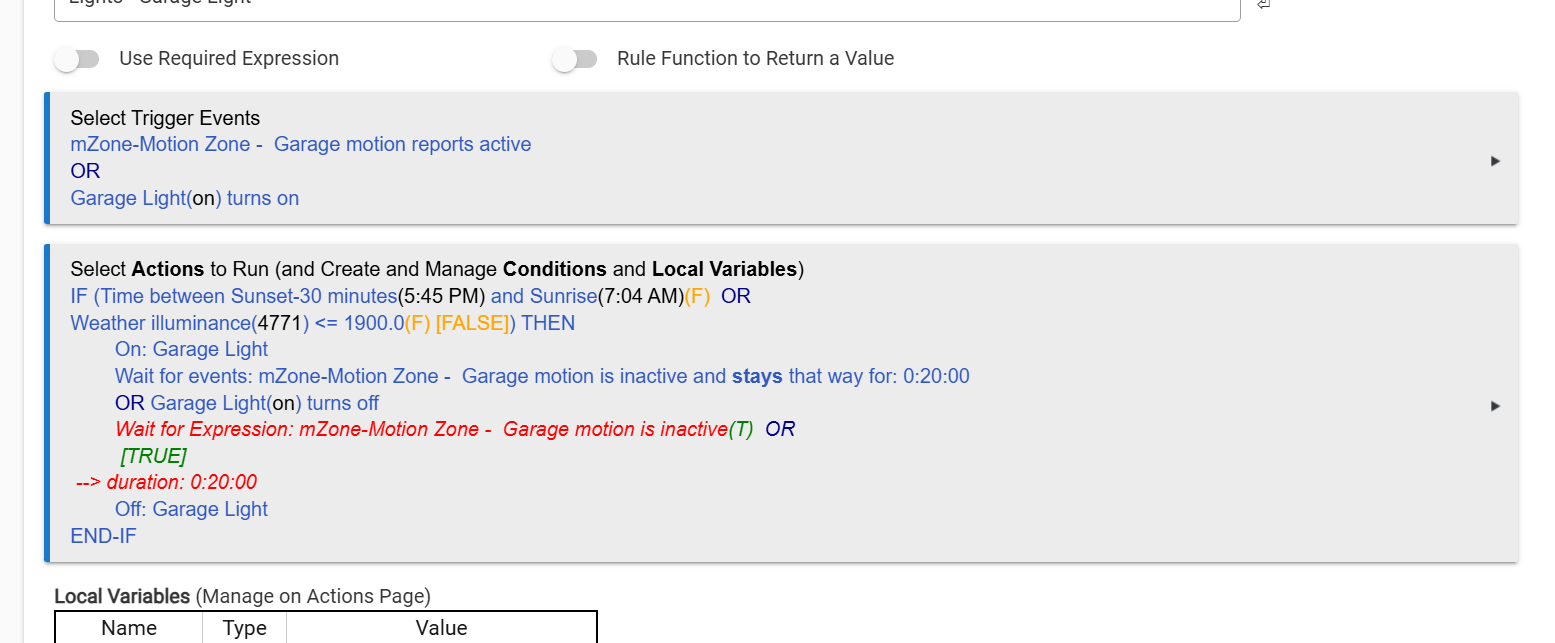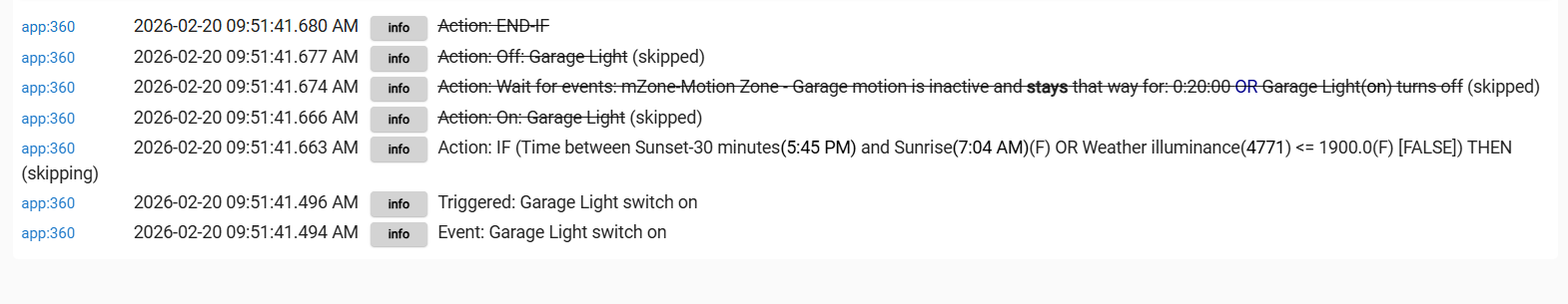 Tried Room Lighting but the added illuminance made it difficult. Never thought of the motion app..... I think i will load that one up for future rules. ![]()