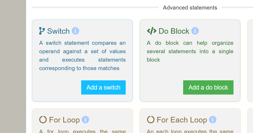 How do I initiate a case/switch block? Forgot how I did it a few years ago. Now I can't find any route to start a new block.