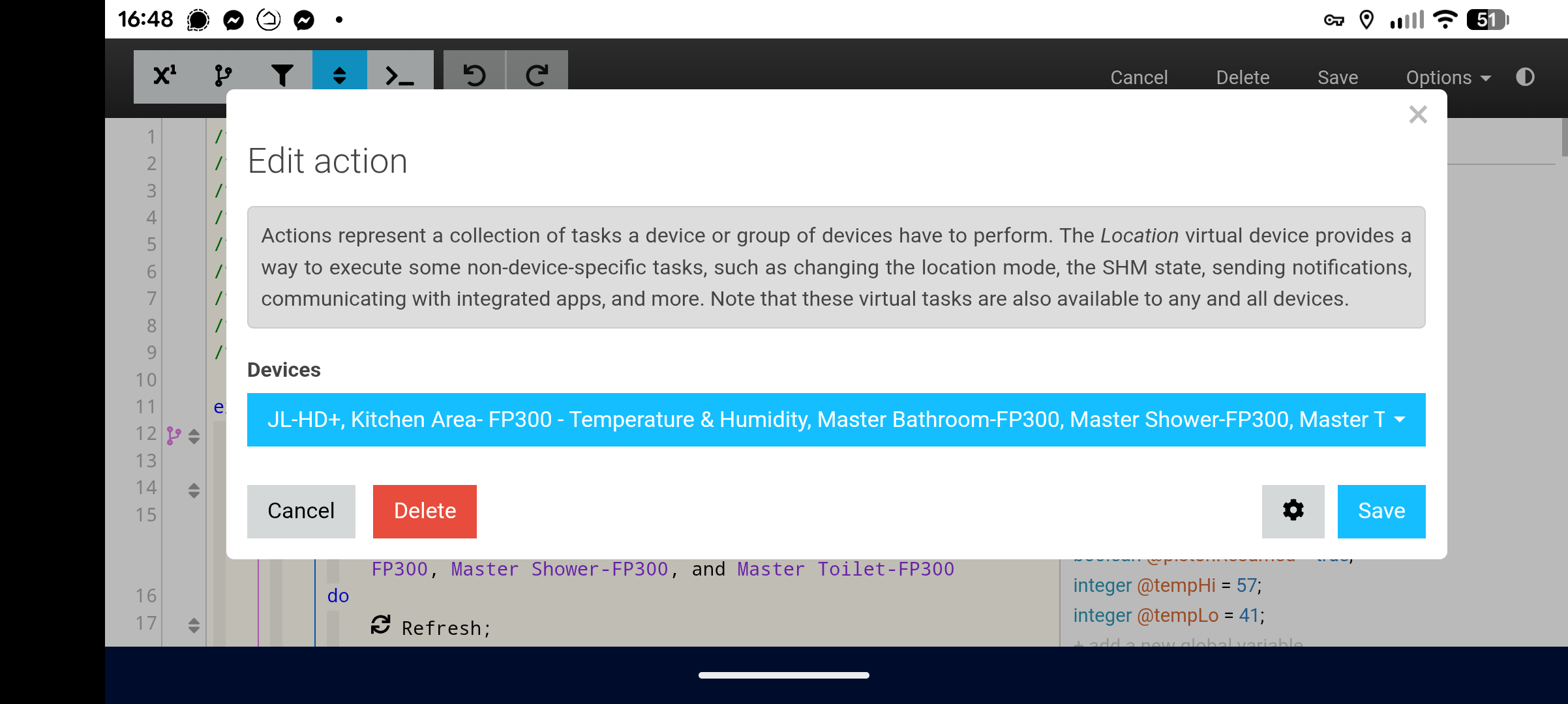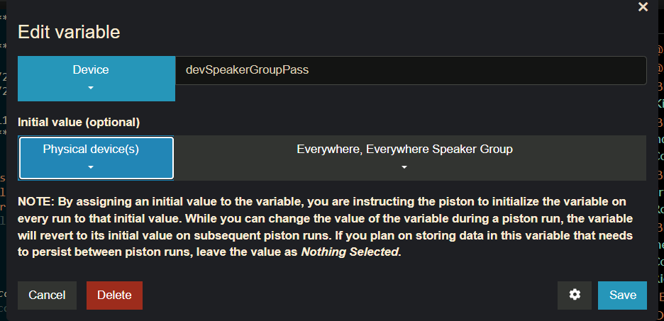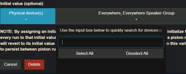 @Greenwave I pushed a fix for this to staging.webcore.co and there is a chance that it could be related to your glitch as well. If it still does not work for you on staging would you please DM me a full screenshot? There is a lot of uncertainty from that tight crop but since the dropdown is above the "Nothing selected" toggle I'm operating under the assumption that you are using webCoRE in a relatively small browser window.