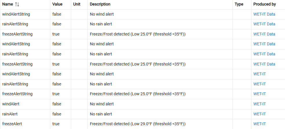 A child device (WET-IT Data) will appear after you run the app for the first time which houses all calculated attributes, zone information, and alerts. This is the data driver that powers your Rule Machine, webCoRE, and Node-RED scheduler.