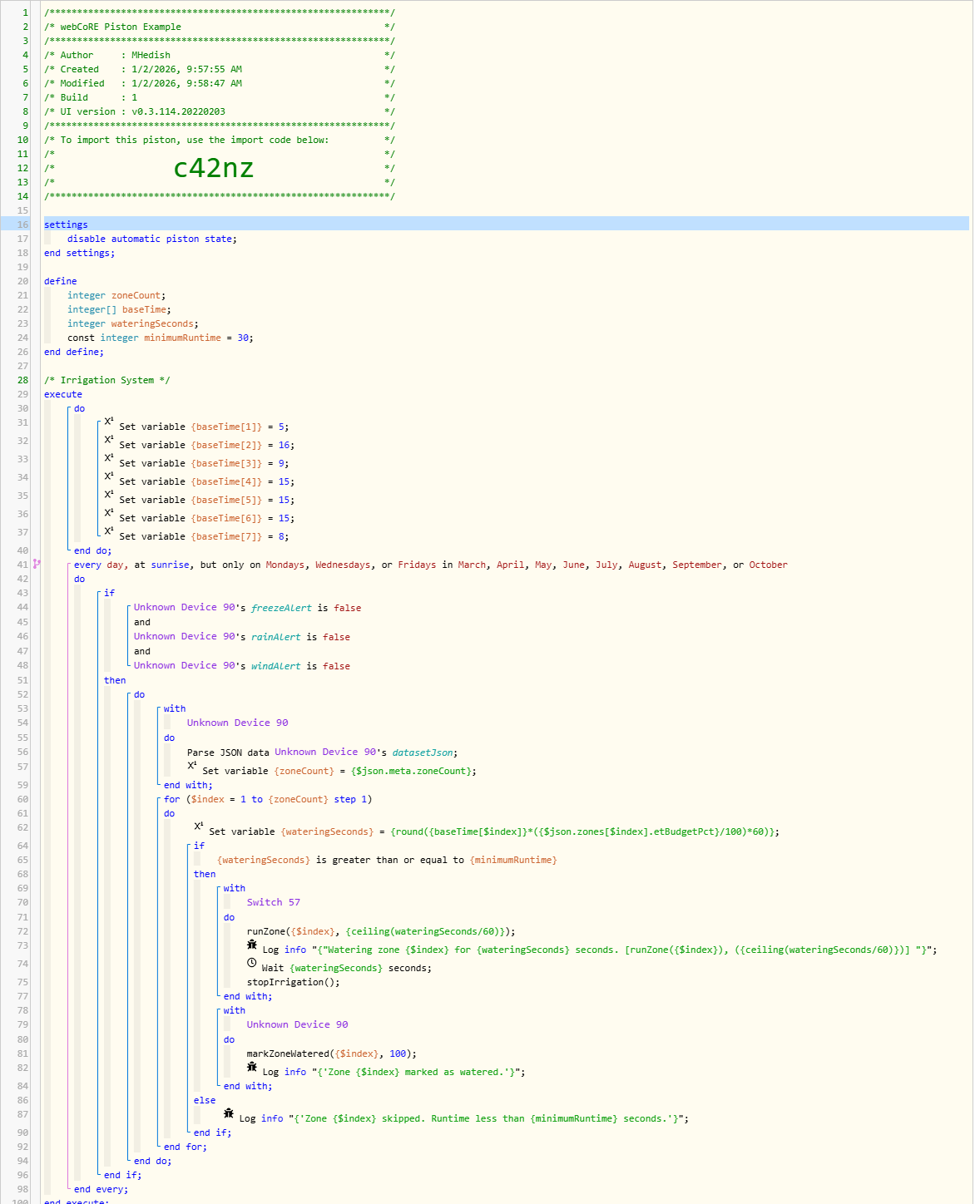 As a follow-up to my Rain Bird LNK/LNK2 device driver, I finished this Hubitat app which allows you to create an intelligent watering system and provides the “smarts” for that device driver and any other irrigation device.