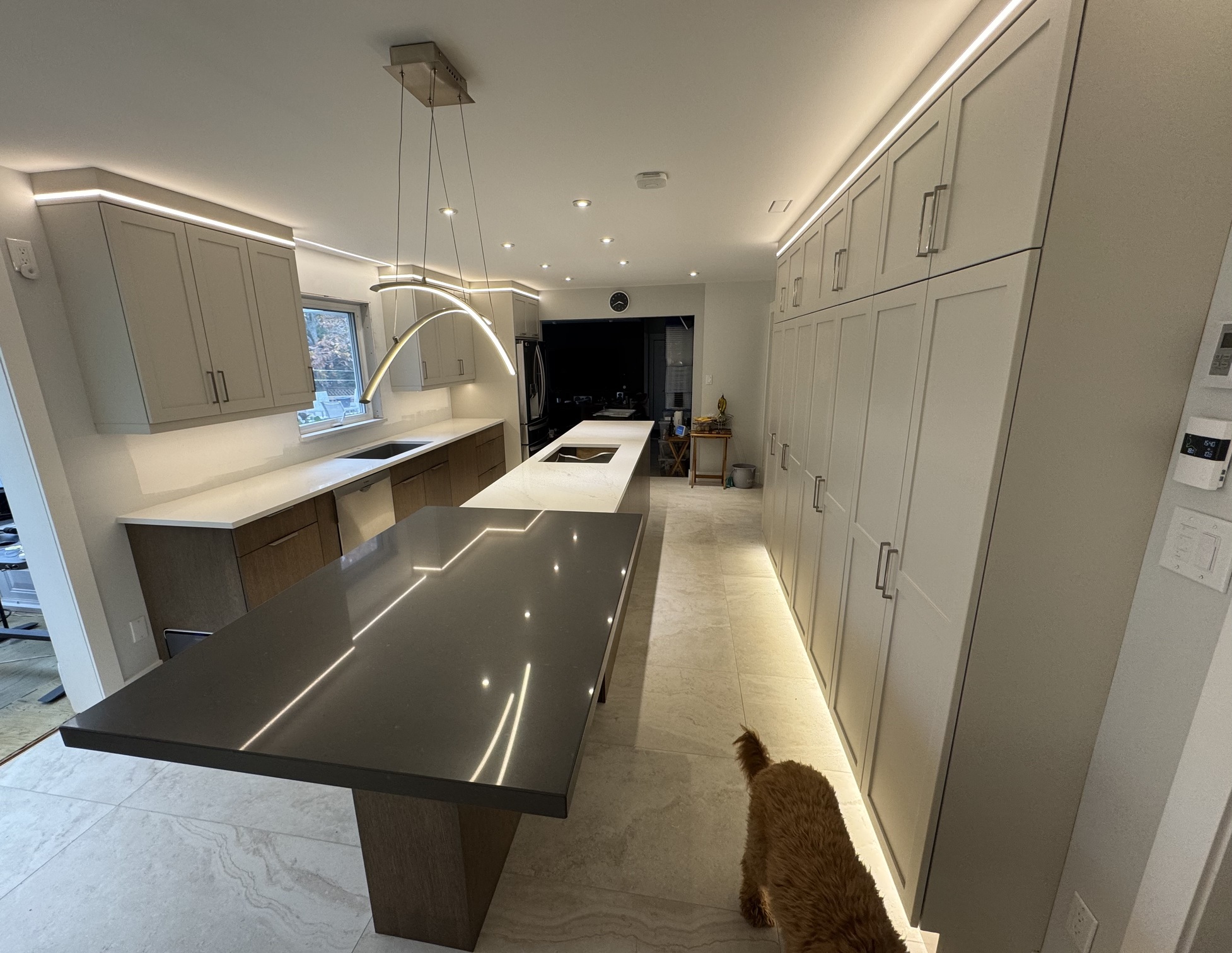 And oh, my wife loves the new garbage pull-out that is to the right of the sink. It opens automatically when you put your foot under it, but I found out after it was installed that I can connect it to our Wifi and then to Alexa to have it open automatically. I’m sure there’s some way to connect it directly to Hubitat, but haven’t done so yet… The Roborock cleaning robot that you can barely make out on the left (at the end of the cabinet) will trigger it when it cleans the floors, and I have yet to spend time to find a way to prevent it from doing so. I will likely just create a no-go zone right under the garbage, of find a way to disable to trigger while is is cleaning… haven’t decided which one to do yet…