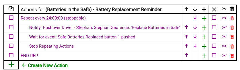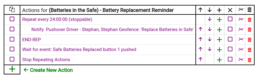 What I am trying to accomplish is to get a text reminder to change the safe batteries, I want to keep getting this text message once a day, until such a time as I go into hubitat and press a button.