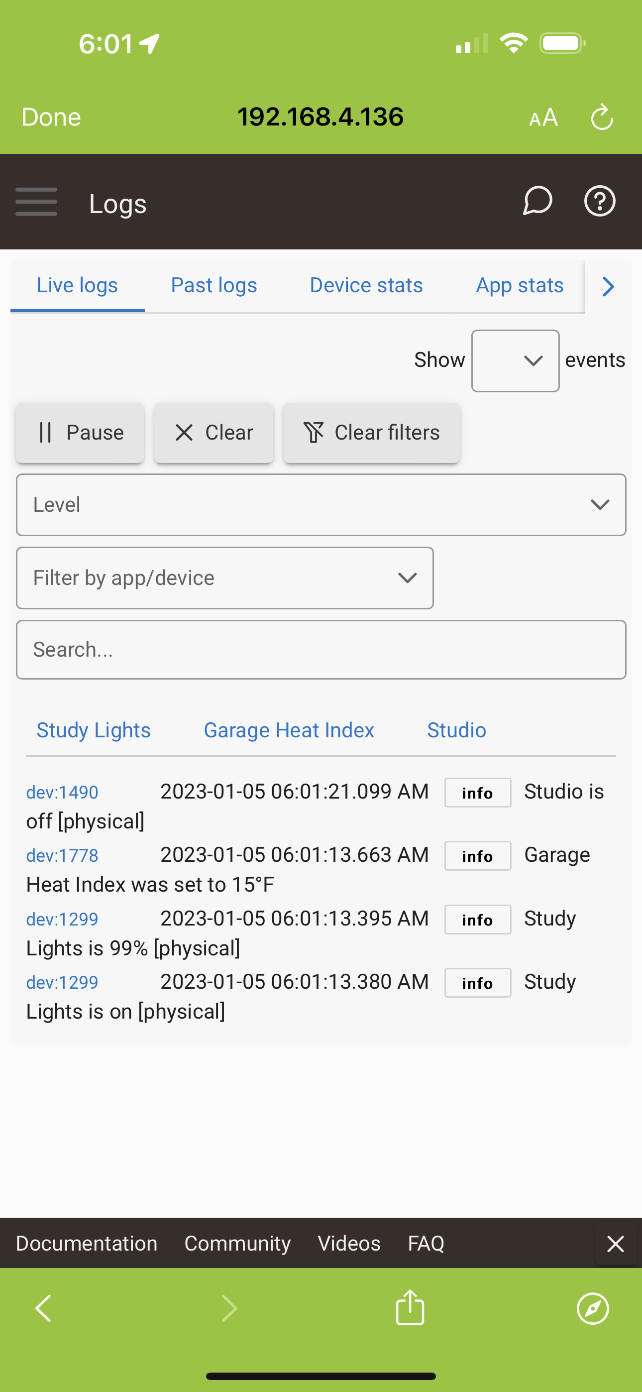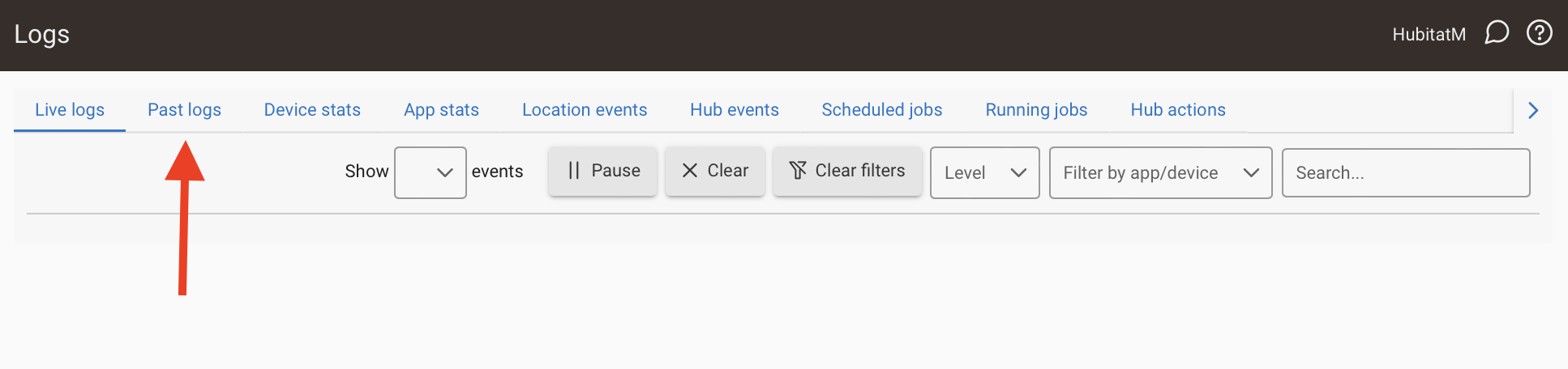 I see where I can go to /logs and see events from that point on. But how can I see the previous logs? Also is there a place in the app (like there was with SmartThings) where you can see the past logged messages? Thanks guys!