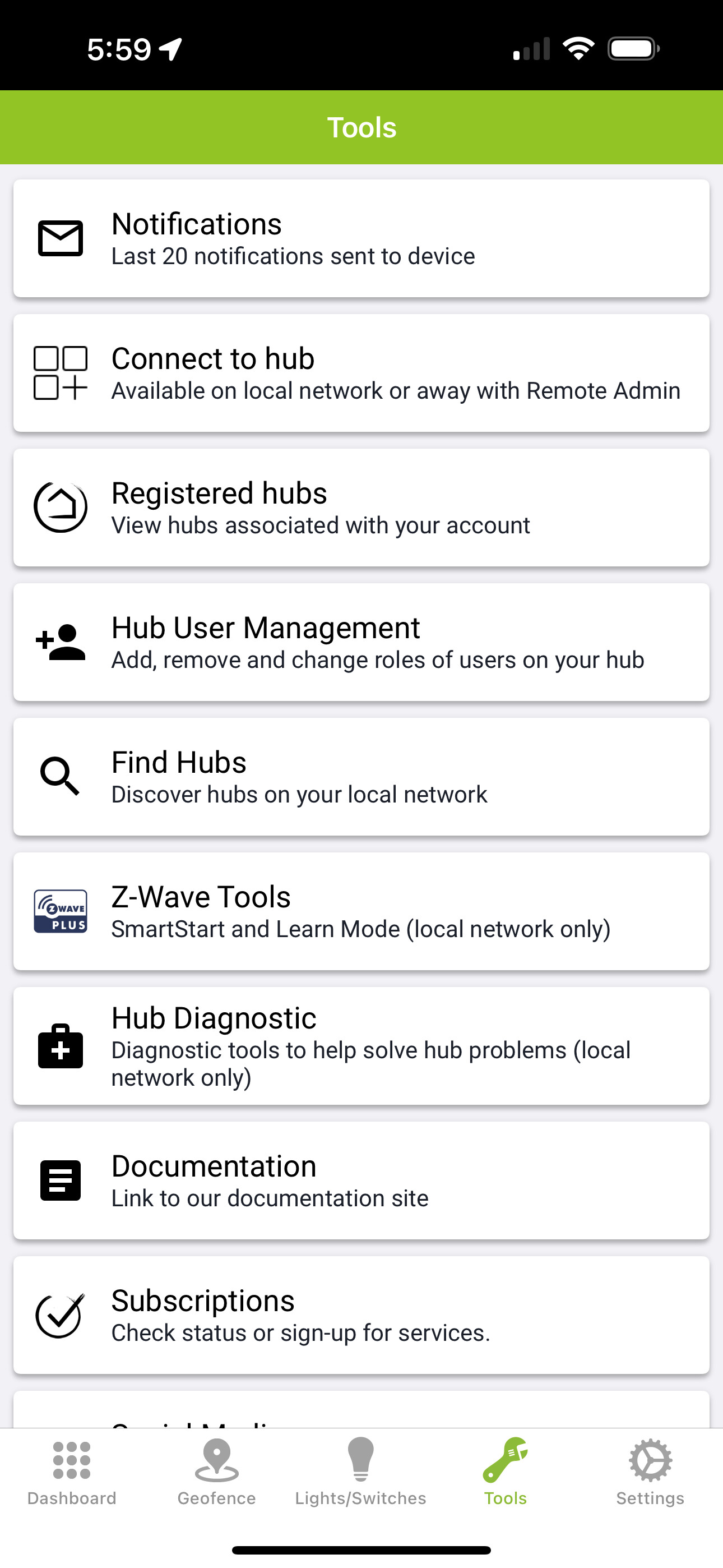 From there you can click on logs and it's like viewing the web version (because you are!) but you can walk around watching the logs. I find that it's a helpful way to view what's happening in real time while tripping sensors to verify that your rules are working the way intended.