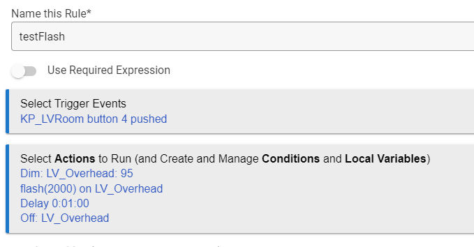 The problem is that the lamp stays when the rule is done running. Looking at the logs, sure enough there is an ending ON command. Anyone know what's going on here?