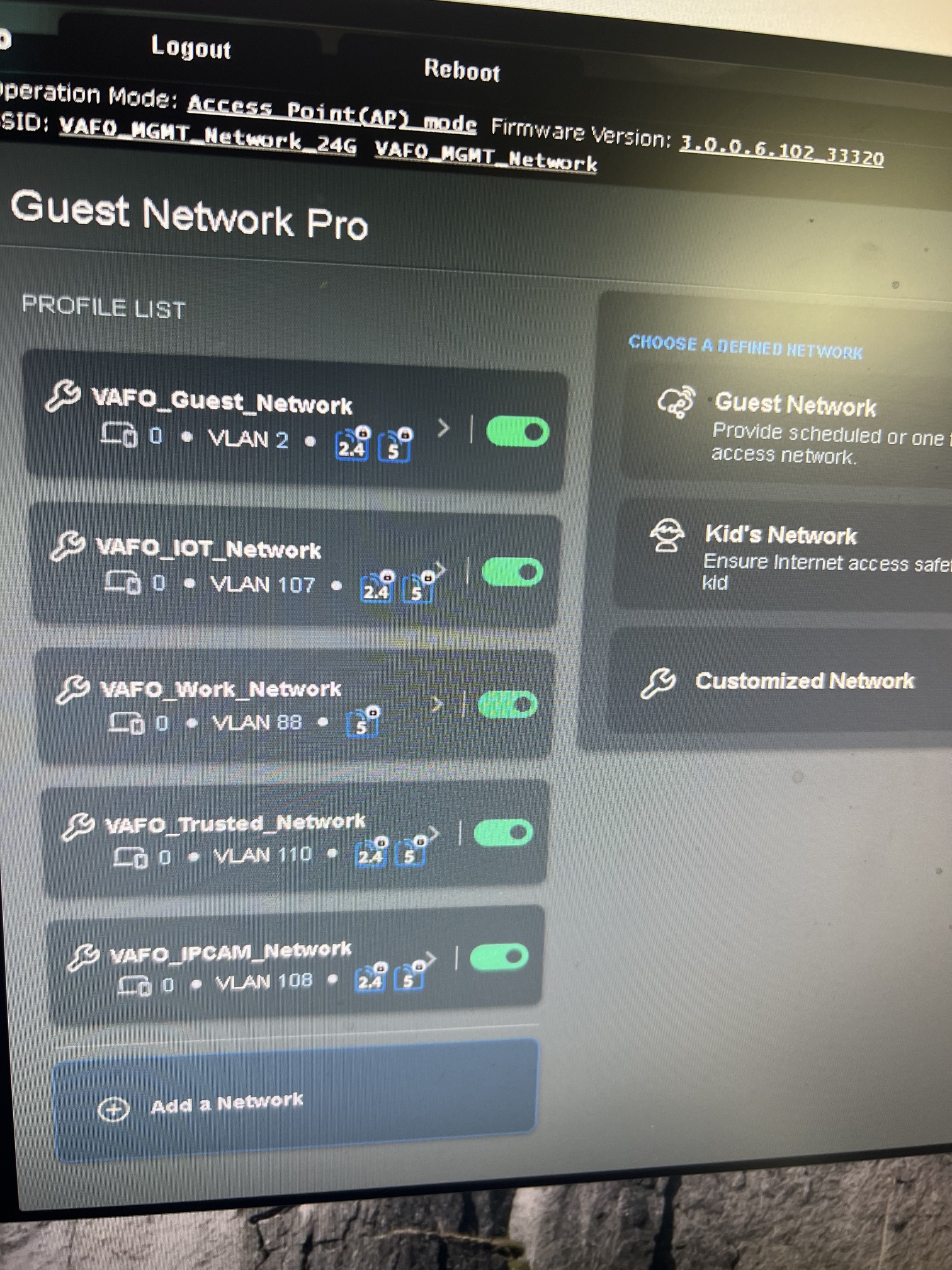 Anybody have current/recent recommendations for a WiFi Router with support for VLAN? Just a 2500 square foot home with the usual devices (PC's, cell phones, printers) and a growing list of IoT devices( Roku, TV, Hubitat, DVD, etc. etc.). Primarily want to keep LAN, IoT, and Guests separate. But share the single Printer.
