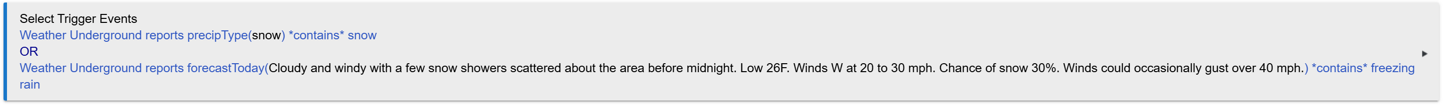 I have the Wunderground driver v7.2.4 installed on my Hubitat. I have an API key & Personal Weather Station ID plugged in. I want to use only attributes: temperature and precipType, specifically "snow", "mix", "freezing rain" or the like, whatever is available. The goal is to automatically turn on heat cable on my house roof via a Zooz Zwave relay. , when the temperature is <33F and when one of the listed precipitations are present.