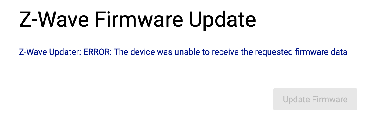 I air gapped the switch that Hubitat informed me had been giving excessive reports and then tried the firmware update again. It instantly gave me an error message that it failed to start. About 10-20 seconds later it gave me the same error message I posted at the start of this thread.