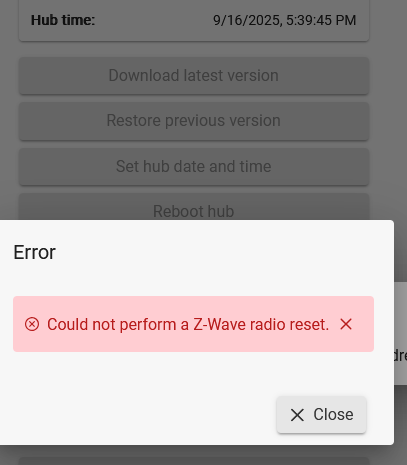 See the rest of the thread above, no indication the radio is offline. User was on ZW-JS and radio would not reset. As soon as they switched to ZIP it worked. Has anyone tested the reset with Zwave JS?