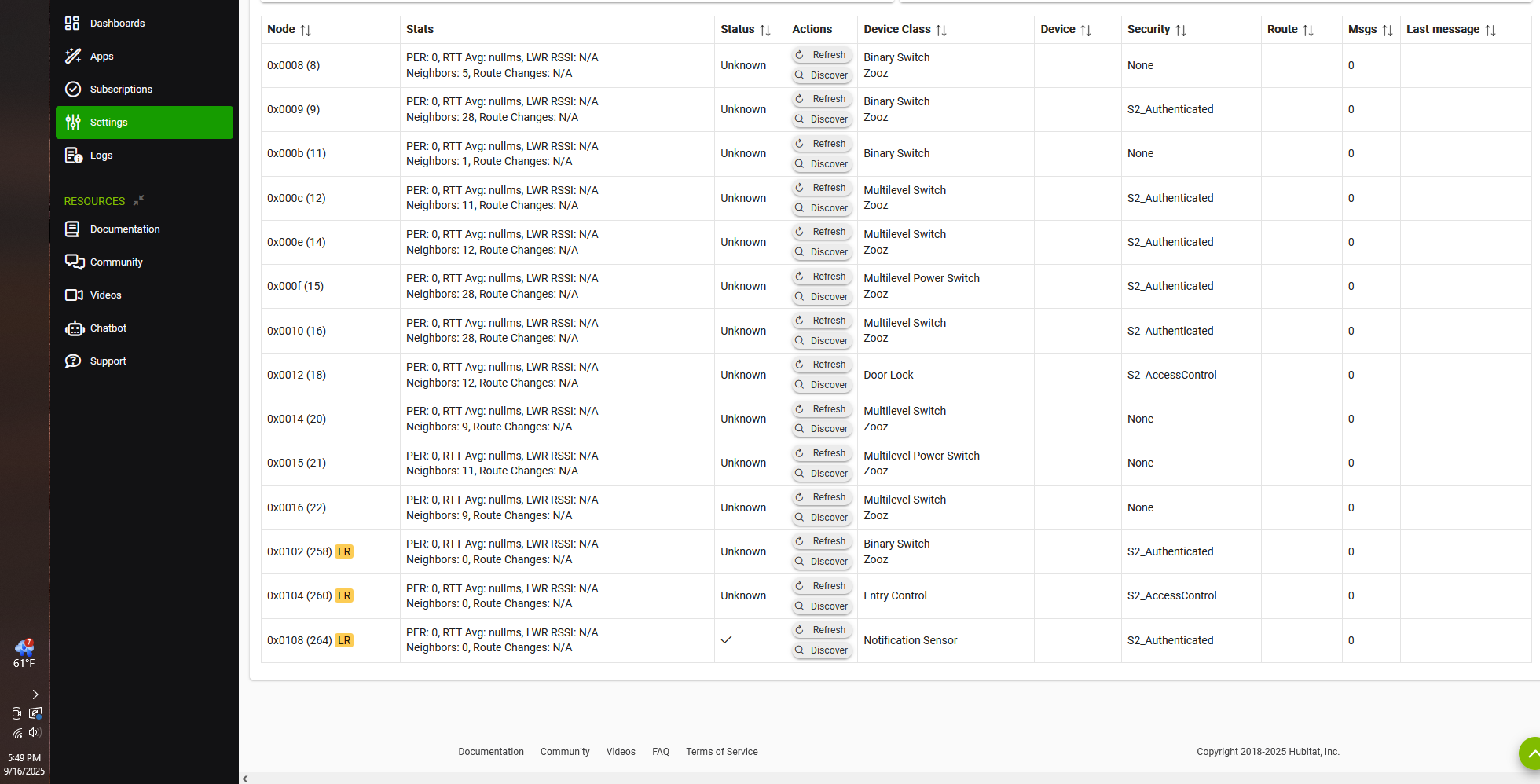 Next, I tried to exclude the first device, about 6 feet from the Hubitat--no reaction. Decided to check the hub, and there are NO devices on the device page, but they're ALL still there on the Z-wave page?? It must've auto-loaded an old database cuz i sure didn't do it. But now there's a "remove" button for pesky node 06. Risky click number 1000 for today, but what have i got to lose.