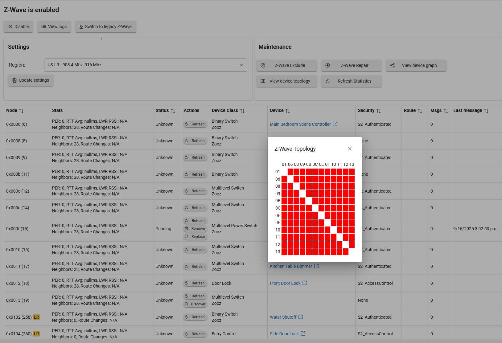 It looks like my Z-Wave node has a ghost (06) that I can't get rid of. It's causing excessive zwave traffic and causing everything else to not work. I've tried removing it with all the tips on here: I've tried turning off the circuit breaker to the ghost, tried refreshing in the zwave details page: the "remove" button never comes up. I've done many shutoff + remove power cycles. I'm not really interested in buying a UZB stick at this point since I JUST started building out a mesh in my new house. Out of desperation, i tried loading a backup from a few days ago, and it didn't make any difference--but i think it made my z-wave details page wonky in that the Topology is now all red AND it's showing another ghost now that didn't exist before. I'm sure that was a bad idea, but oh well.