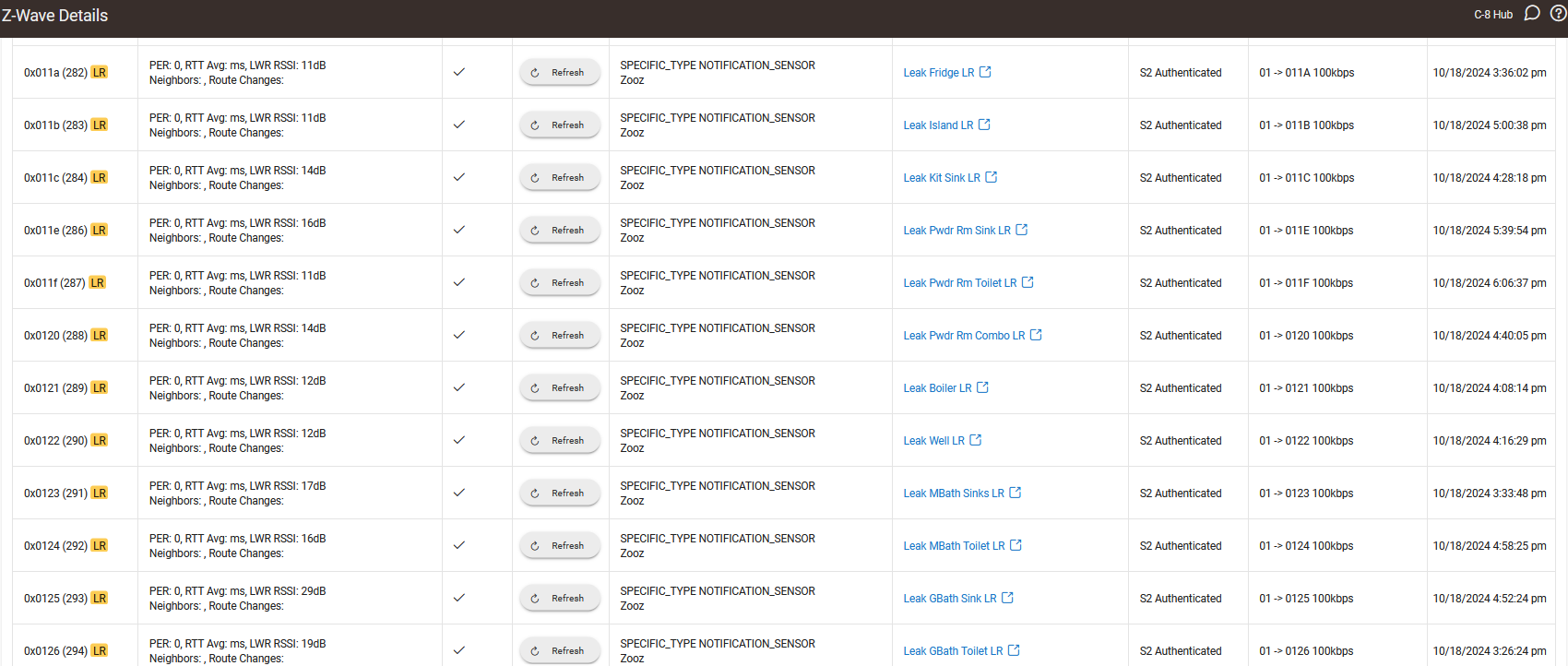 This doesn't help, or it might, but I have 12 ZSE42 LR leak sensors. Long range communicates directly to the hub, so they're all talking direct to the hub.