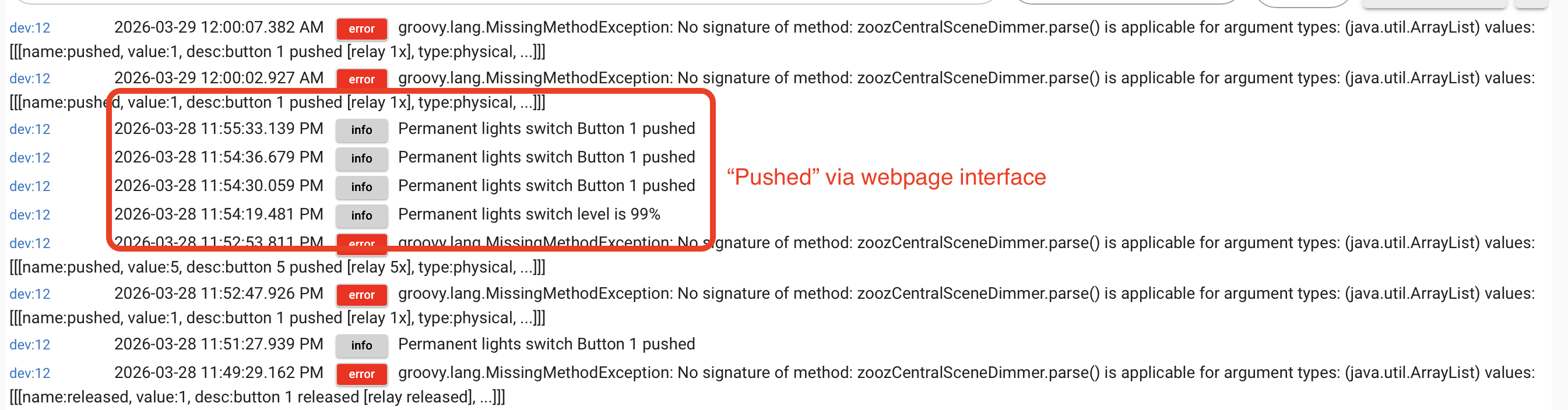 Ok back to the ZEN30... I am losing my mind over this switch. I updated to 2.4.4.155, and now the "relay switch" thinks it's a 5 button scene controller, and I am at a complete loss. I cannot change the type now. I do have error logs but I have no idea what they mean.