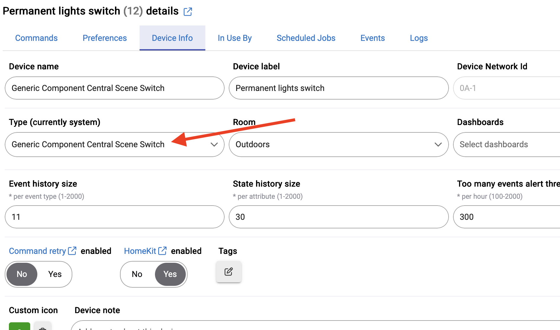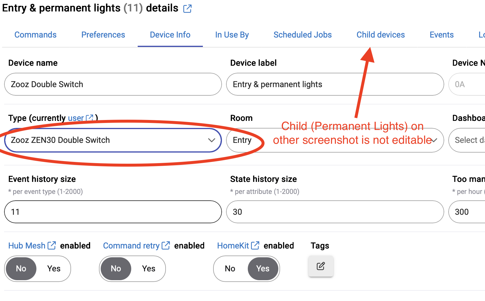 I have that device driver in the parent, but the child (the relay switch) is automatically(?) populated (greyed out) and I cannot figure out how to change it.