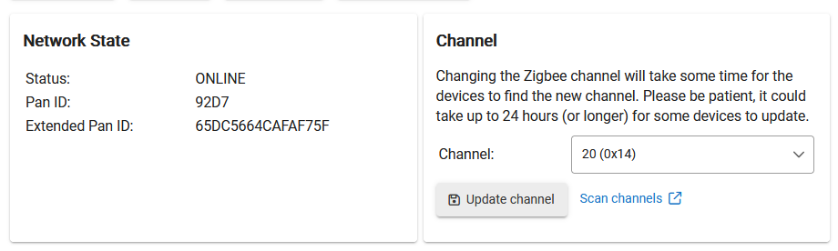 Exploring further, I clicked buttons on Zigbee settings page to 'scan channels'. My results of the channel scan confuse me: