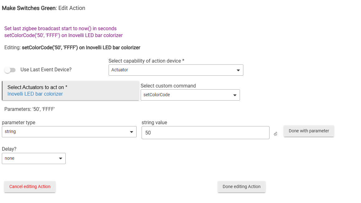 sendEvent(name: "colorCode", value: "${colorCode}") // new LED color