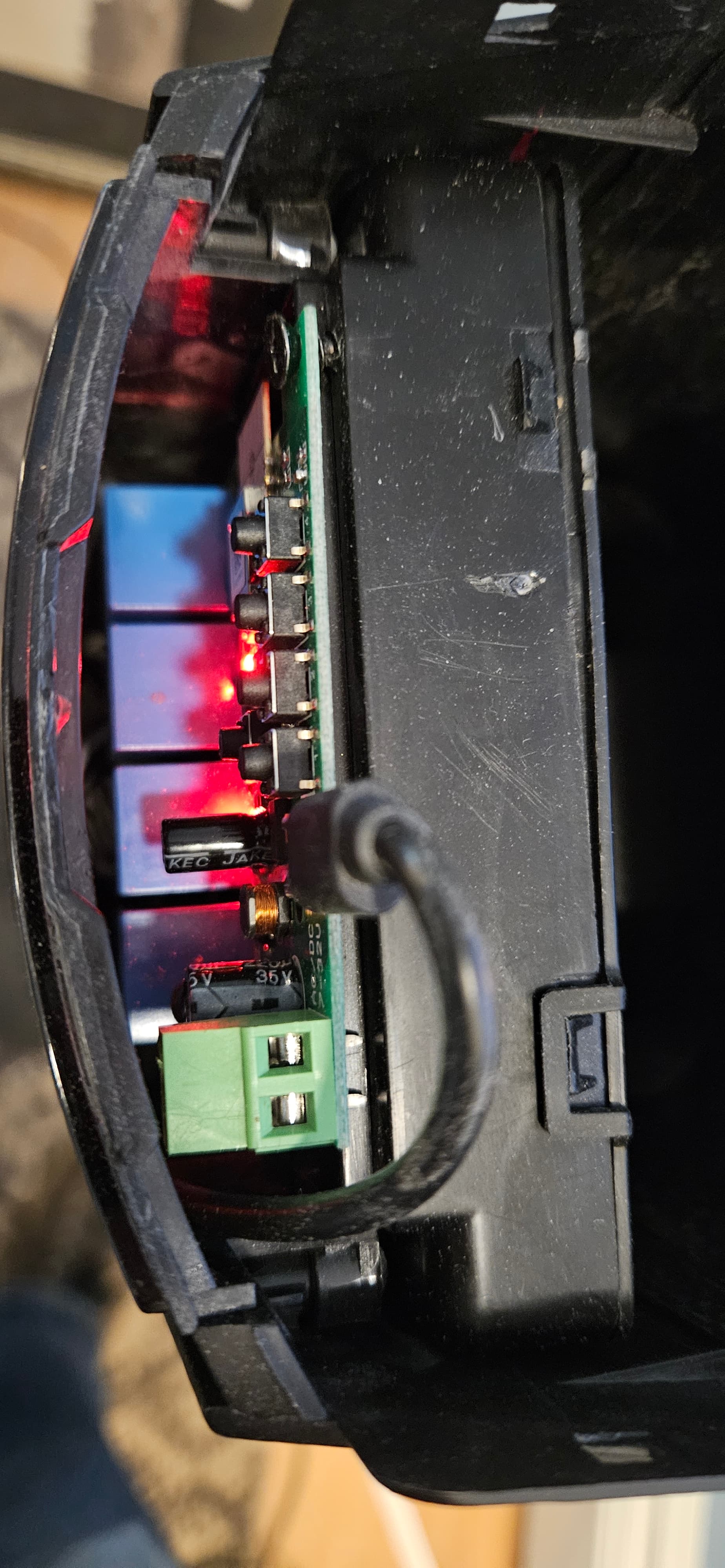 Pretty simple to wire it in. I did use a 5v USB power supply to power the board, which I took out of the case and wired to the 120v in the fan.