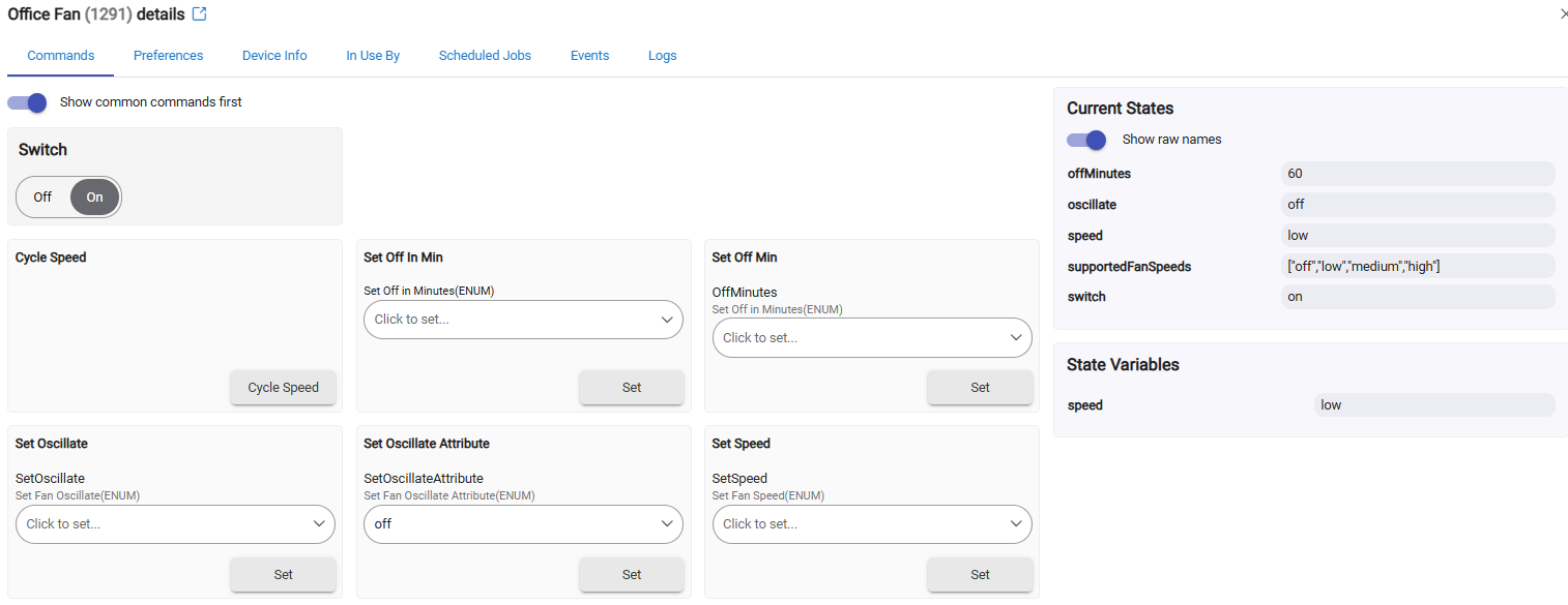 I ran out of buttons for an off button from the remote, but I coded it so that if you press the same speed button for the speed that the fan is on, it will turn off the fan. From the dashboard tile, selecting "auto" from the fan speed menu will toggle oscillate on/off.