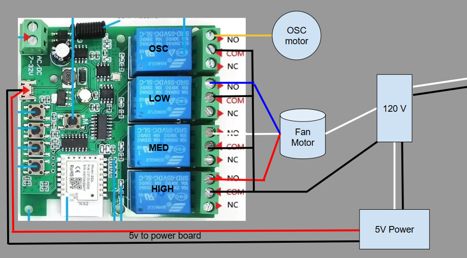 I ripped out the control board that also received the IR. All it did was send 120v to one of three speed wires, and 120v to the Oscillate motor. The old controller is now just in a bag should I ever want to replace it.