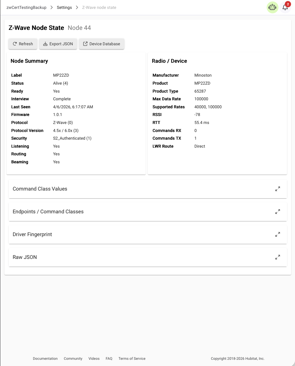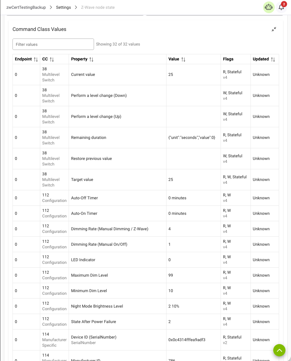 Full ZWave-JS Node State browser. Useful for troubleshooting and driver development.